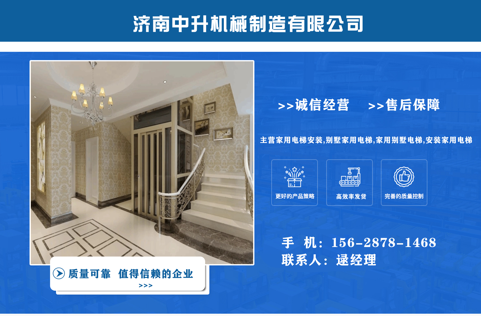 濟(jì)南中升機(jī)械制造有限公司主營(yíng)家用電梯安裝,別墅家用電梯,家用別墅電梯,安裝家用電梯等業(yè)務(wù),質(zhì)量可靠,值得信賴(lài)! 公司為客戶(hù)提供免費(fèi)上門(mén)測(cè)量,根據(jù)實(shí)際情況1對(duì)1服務(wù),保障符合用戶(hù)需求,終身提供售后服務(wù),讓用戶(hù)買(mǎi)的舒心用的放心。匠心團(tuán)隊(duì),打造信賴(lài)產(chǎn)品,我們有團(tuán)結(jié)、奮進(jìn)拼搏的匠心團(tuán)隊(duì),為您提供可信賴(lài)的品質(zhì)保證?! 膭?chuàng)立以來(lái)一直嚴(yán)格執(zhí)行質(zhì)量管理體系、環(huán)境管理體系等相關(guān)標(biāo)準(zhǔn)管理體系,“顧客滿(mǎn)意”是我們始終如一的追求。我們有屬于自己培養(yǎng)的安裝隊(duì)伍,24小時(shí)服務(wù)電話(huà),為您提供可靠的服務(wù)與支持?! ∥覀兊脑妇笆墙ㄔO(shè)國(guó)內(nèi)具有影響力的電梯公司,做城市美好空間的好伙伴。...